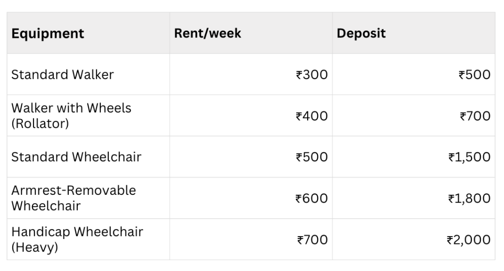 Our rental plans are ideal for short-term needs, while long-term users can buy walkers or wheelchairs at 10% off. Equipment is trialed in-clinic or delivered to your home (delivery charges apply).